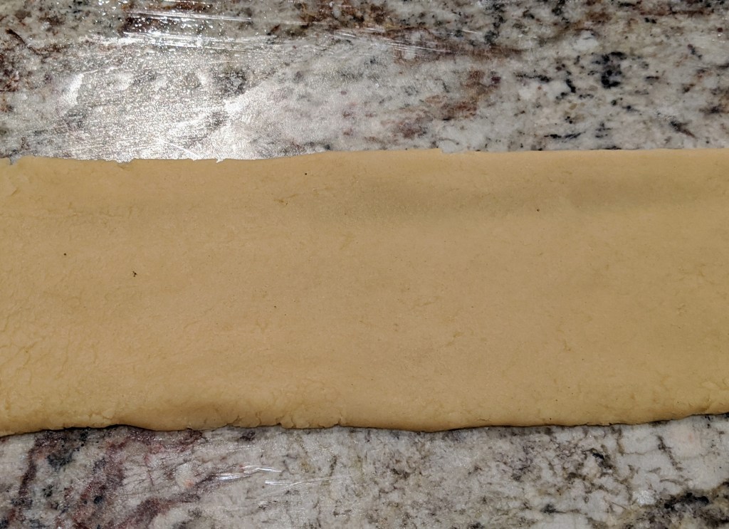 不用打发,前面三个先拌活均匀,再加入鸡蛋拌活,面团应该是软硬适中,放冰箱冷藏一个小时。