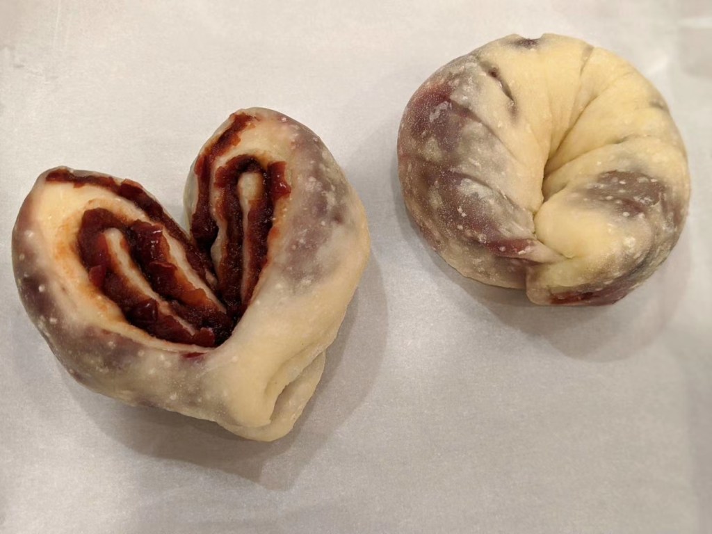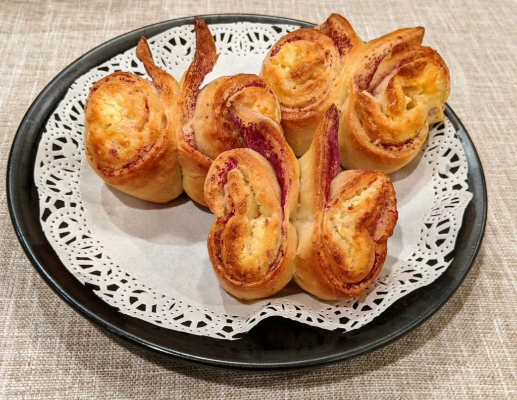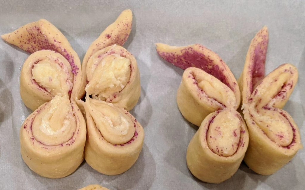 做点心有点像玩泥巴,可以捏成各种花样。就是做出来的形状不完全可控,不过倒也有趣,像这次就是蝴蝶长的有点过胖了,奶油包变成了一个个小猪猪脸😅