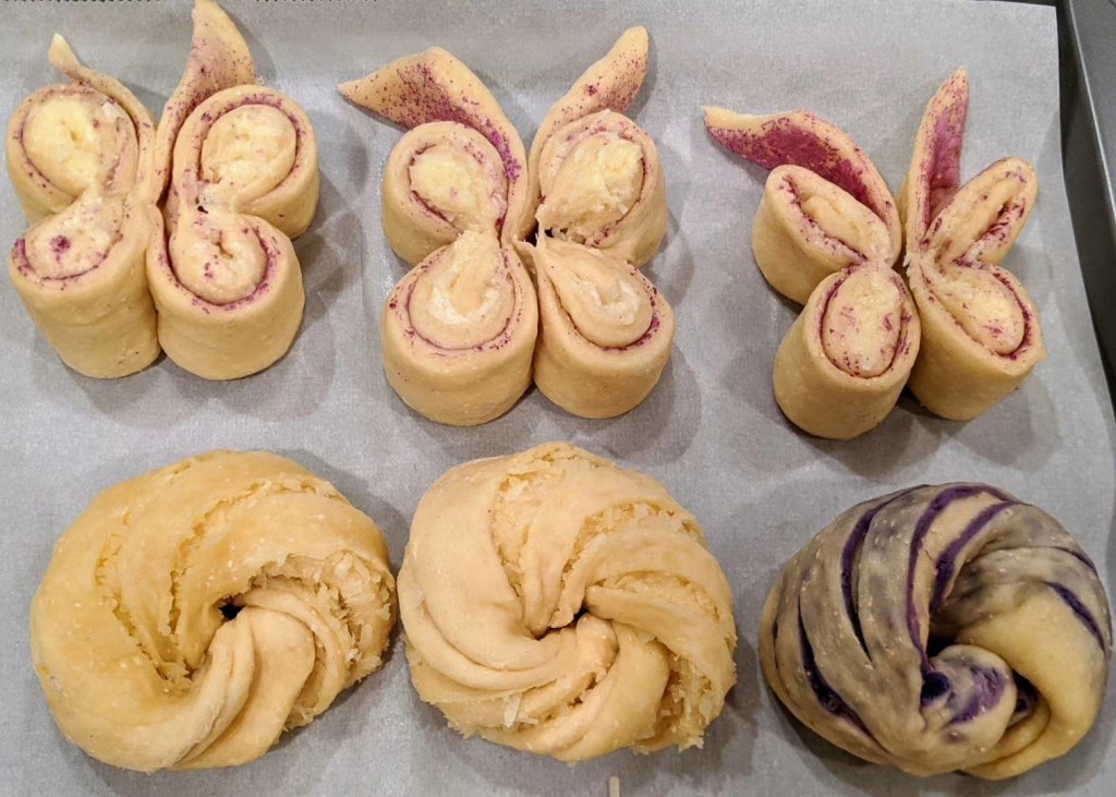 这次多做几种花样和口味,做了椰蓉,香芋,奶油,还有枣泥。