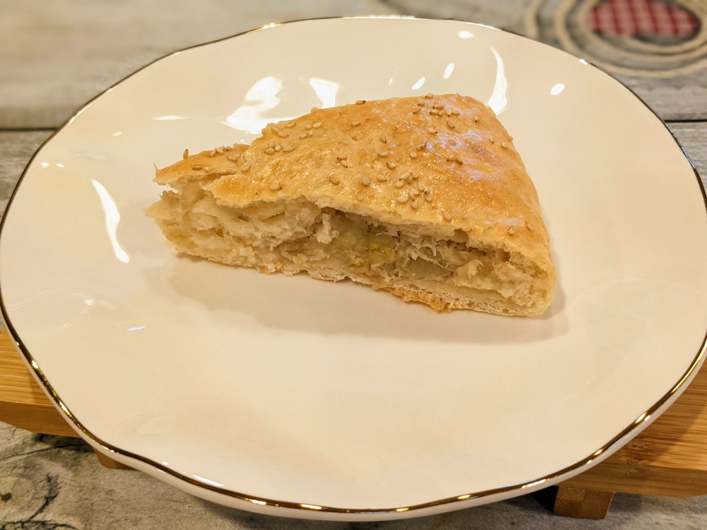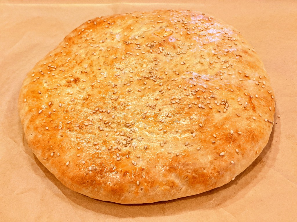 - brush with egg, sprinkle with some sesame seeds, bake for ~25 minutes at 350f.
