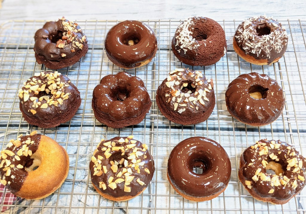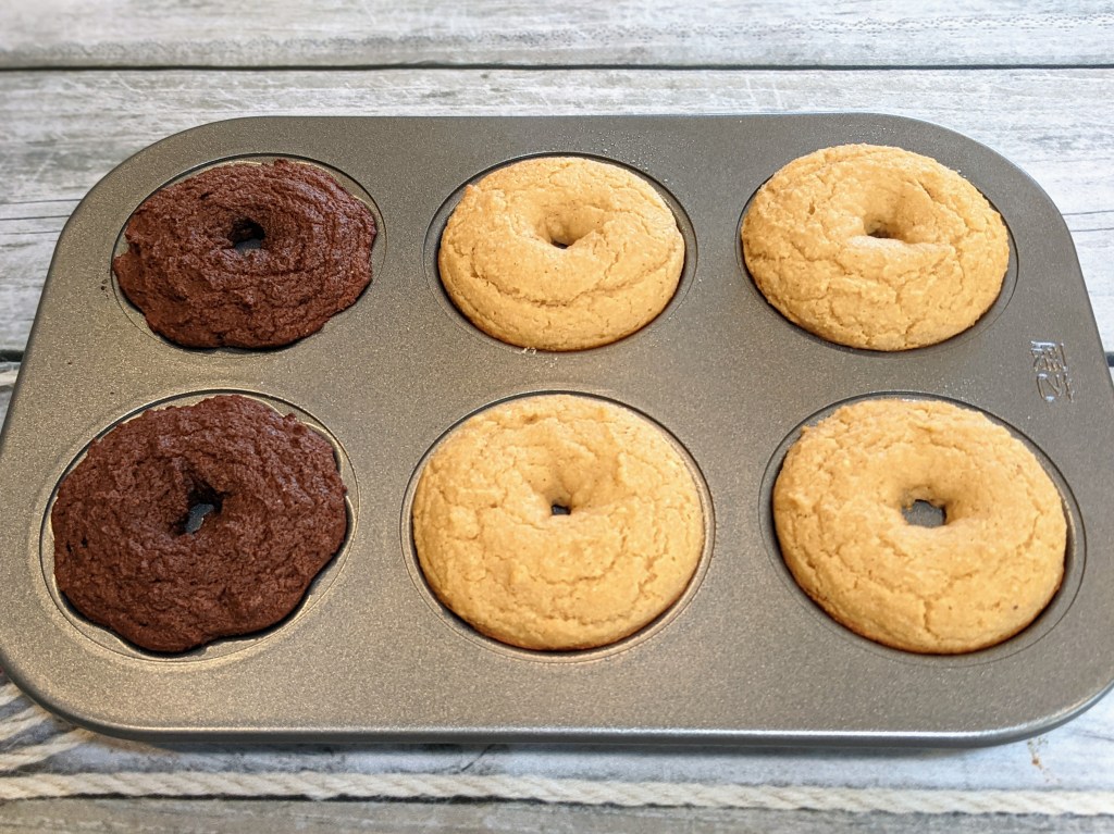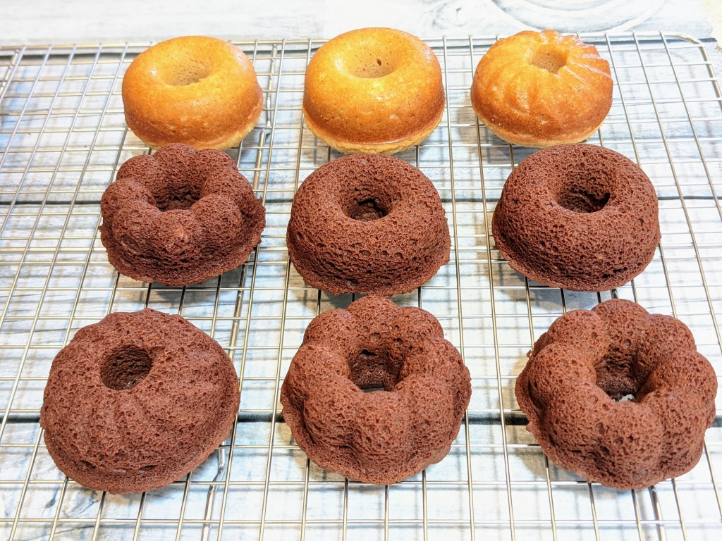 - Put in a piping bag, and squize to the donut pan. Makes 9~10 donuts.