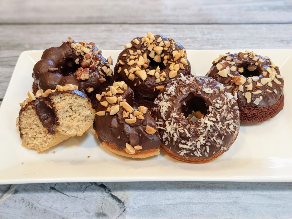 - Mix well. It should be a smooth, a little bit runnary texture that is easy to squize to the donut pan.If too thick, adjust with a bit almond milk or milk.